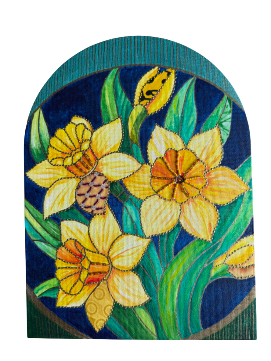 Acrylic, paint, fabric , beads, embroidery