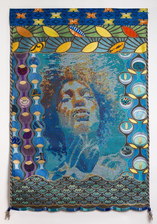 Acrylic, paint, fabric , beads, embroidery